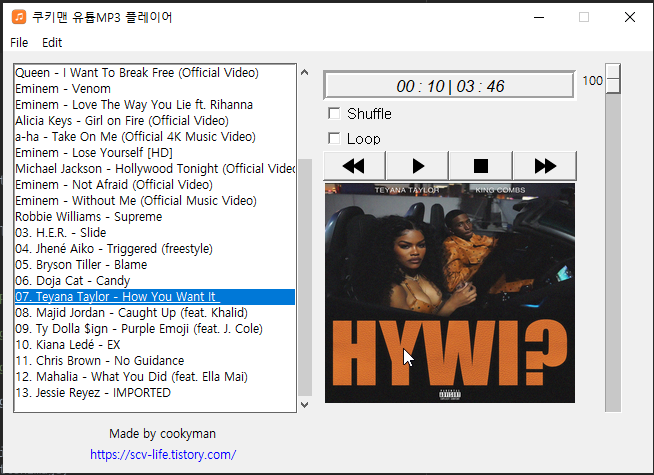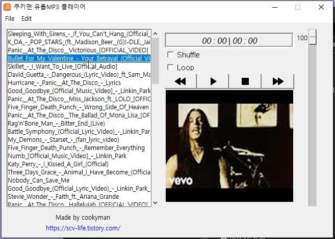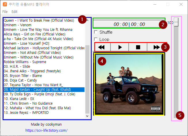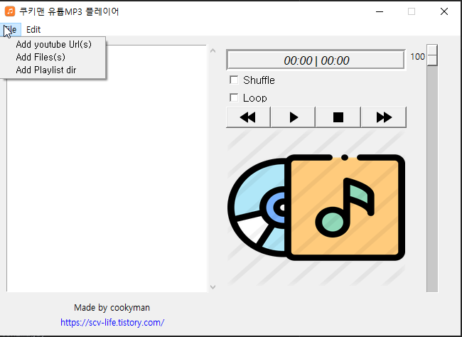 셔플기능과 루프기능 등 몇몇 기능은 구현되어 있지 않은 점 참고 부탁드립니다. (지속적으로 버전업그레이드 할 계획입니다.)